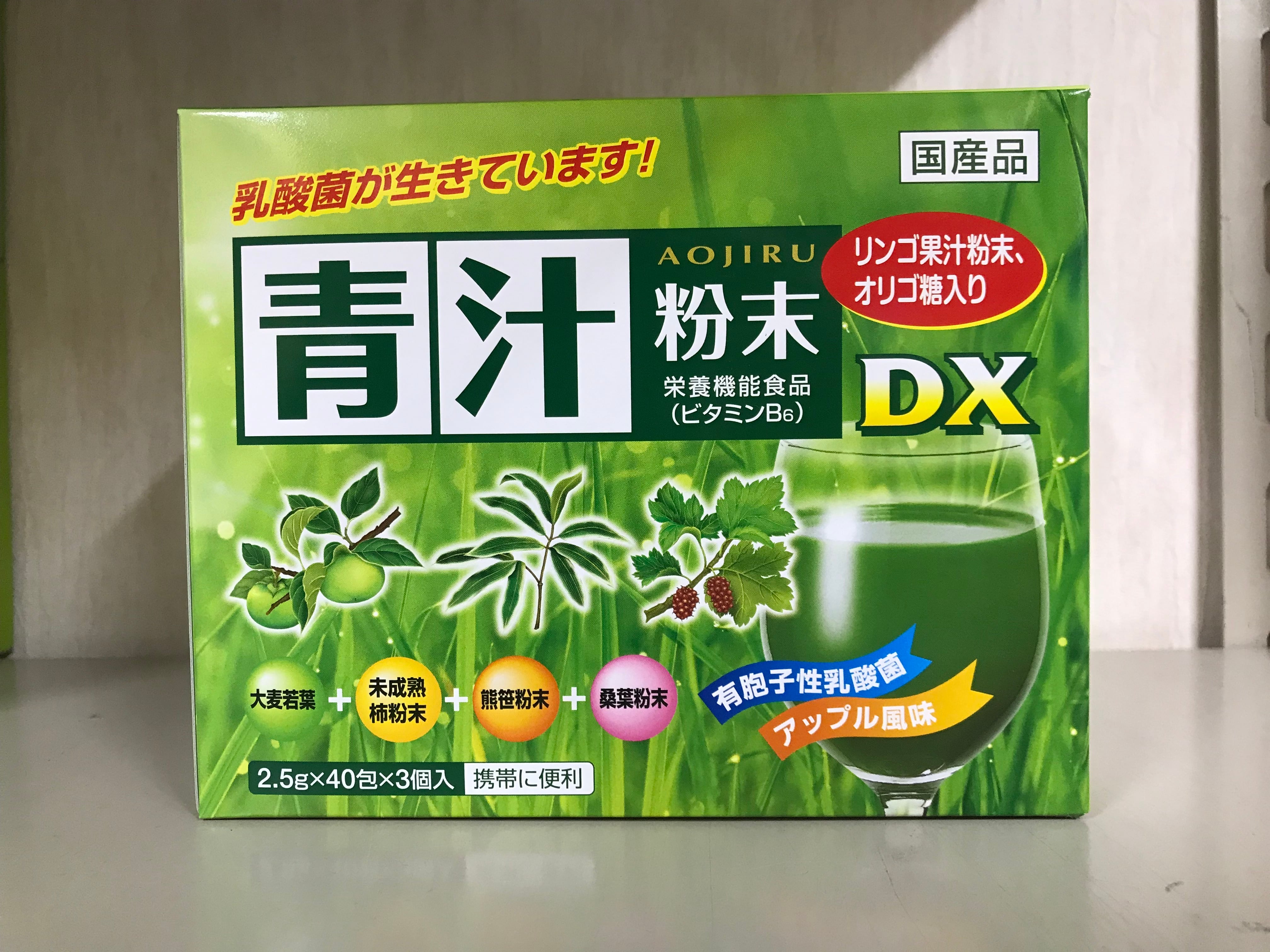 青汁粉末DXは大切に育てられた国産大麦若葉100%を使用し、新鮮なうちに加工し、さらにオリゴ糖、桑葉粉末、未成熟柿エキス粉末、熊笹粉末、有胞子性乳酸菌末、ビタミンB6を加えた健康食品です。くせがなく、飲みやすいのでお子様から大人まで家族みんなの健康にお役立てください。